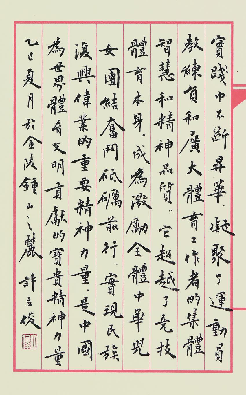 小楷 体育是社会发展和人类进步的重要标志,是综合国力和社会文明程度的重要体现 70cm-46cm