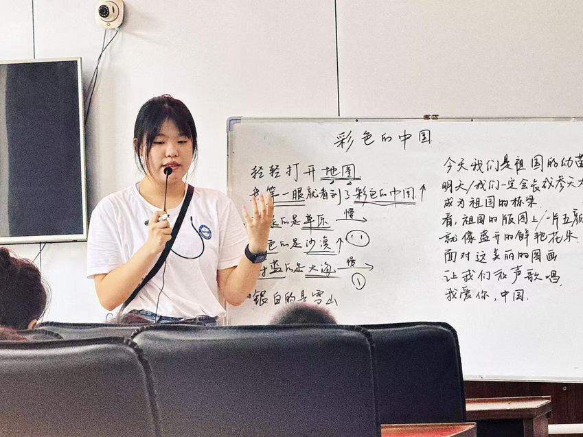 为引导学生在经典诵读中感受爱国情怀,汲取成长力量,团队成员选取《彩色的中国》作为本次朗诵的主题,教学中重点指导生僻字、易错字读音,通过节奏划分、语调起伏讲解引导学生感受音韵美,将爱国情怀融入在朗朗书声中,指引他们在成长道路上,始终怀揣对祖国的热爱,努力成为有担当、有情怀的新时代好少年。