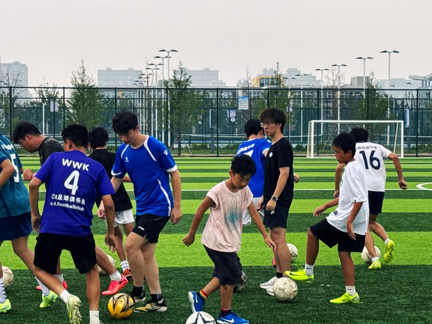 为帮助学生搭建体育学习、体质锻炼与团队精神培养平台,团队成员依托专业体育技能,从足球、篮球和武术历史背景切入,将体育游戏融入技能教学,用规范普通话教授训练技巧,创新“寓教于乐” 教学模式,将运动与推普相结合。团队成员、足球一级运动员王知萌应丰县体育中心特邀为其足球专项进行专业指导,助力丰县足球青训体系的规范化建设与人才培养质量提升。大小学生们在挥洒汗水的运动中,不仅强健了体魄、学会了技能,更在团队配合与语言交流中凝聚了集体意识。