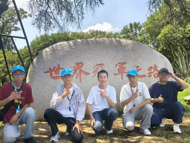 在世界冠军之路合影留念