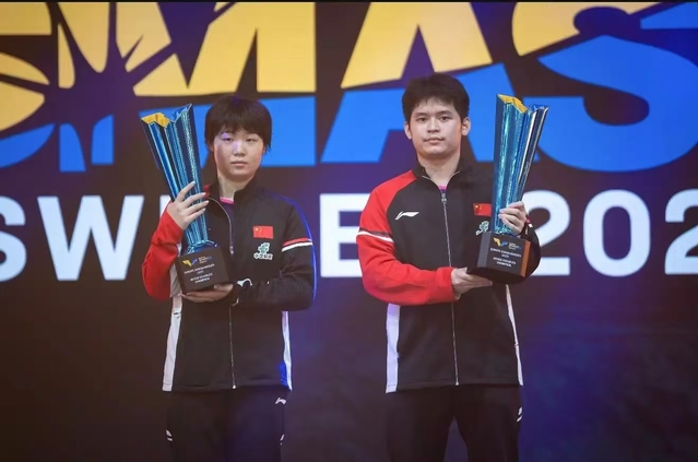 8月23日凌晨,在WTT世界乒联欧洲大满贯瑞典站混双决赛中,乒羽学院乒乓球队运动员蒯曼与国家队队友林诗栋搭档以3:0战胜韩国队组合林钟勋/申裕斌,夺得冠军。
