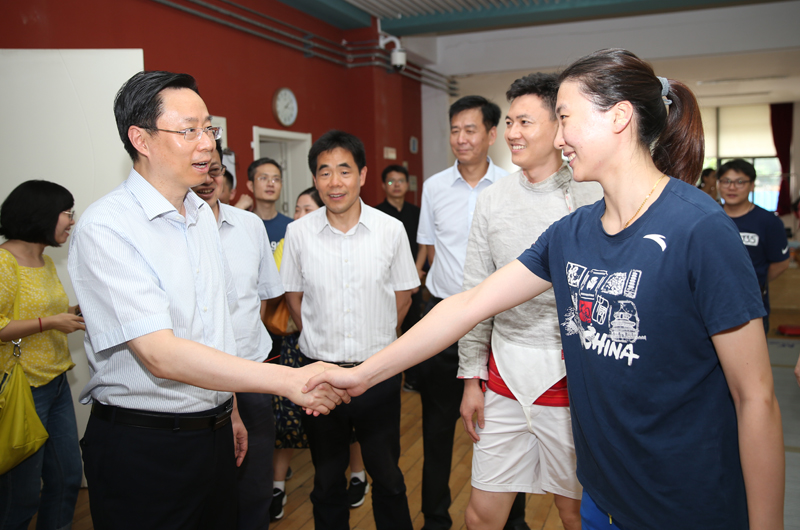 蓝绍敏副省长与击剑奥运冠军许安琪握手并亲切交流
