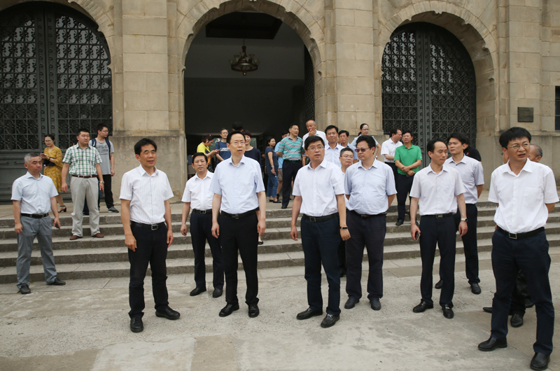 在原民国中央体育场旧址,蓝省长与我院院领导班子全体成员一一握手致意。随后,蓝省长视察了原民国中央体育场旧址,询问并了解了我院的办学情况。赞叹我院的历史底蕴和办学成绩,表示以后将专程来视察调研。