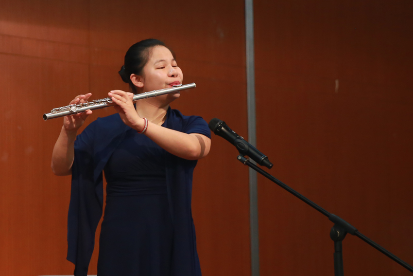 一年后,她又回归最初的音乐梦想,前往瑞典皇家音乐学院拜大师学艺。追梦的过程中,她曾代表中国国家队参加2004年雅典残奥会,残疾人亚运会,多次参加全国残运会,共获短跑金牌14枚。她登上了维也纳的舞台,她走进了巴黎联合国教科文组织······她的故事甚至被拍成纪录片,并翻译成多国语言,在多国国家广为传播。她做到了大多数普通人都难以企及的事情。在讲座现场,吴晶为大家带来了婉转悠扬的长笛表演,赢得全场掌声。