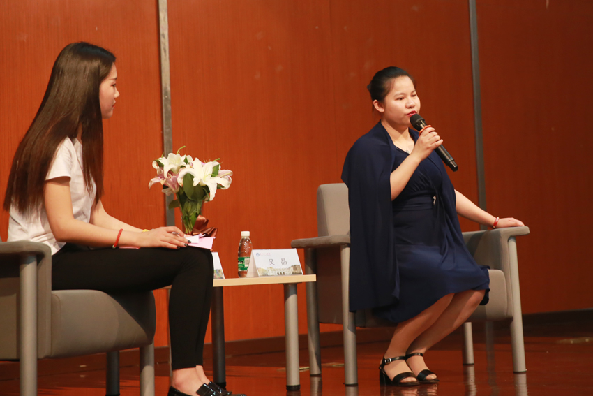 在分享会上,吴晶讲述了她与体育结缘,刻苦训练,不屈不挠,克服巨大困难,以常人不可想象的努力不断战胜自我的成长历程。她从小因为眼疾而双目失明,因为对生活、对知识、对音乐、对体育的热爱,她以优异的成绩从南京外国语学校毕业,通过了哈佛、耶鲁、斯坦福大学等6所名校的面试,因为志愿为盲人群体服务,她最终选择前往美国蒙哥马利学院政治学专业就读。