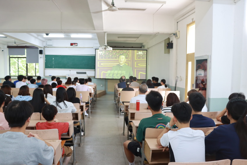 上午九时,盛大阅兵仪式正式举行。礼炮鸣响,声震长空。历史的气息透过屏幕弥漫各个教室,天安门广场上铿锵的正步声,穿越千里山河,回荡在校园的每个角落,学生年轻的面庞被屏幕上的红旗映照得熠熠生辉。在这个庄严的历史时刻,师生们怀着对历史的敬畏和对祖国的热爱,共同见证了这场意义非凡的盛典。现场多次爆发出由衷的赞叹和热烈掌声。师生们全神贯注,神情肃穆而自豪,无不为人民军队的威武雄姿所深深震撼。