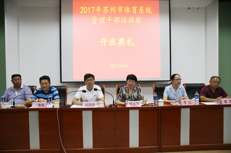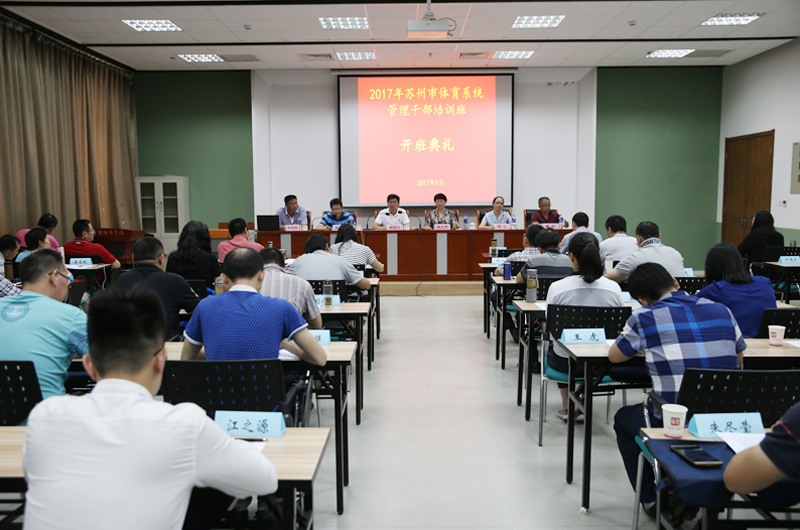 6月26日至7月7日,苏州市体育局和我院联合举办的2017年苏州市体育系统管理干部培训班(第一期)在我院开班。苏州市体育局领导班子成员,局机关全体人员、直属单位科级以上干部,以及所辖市县区体育部门的管理干部参加培训。培训分两期在我院进行。