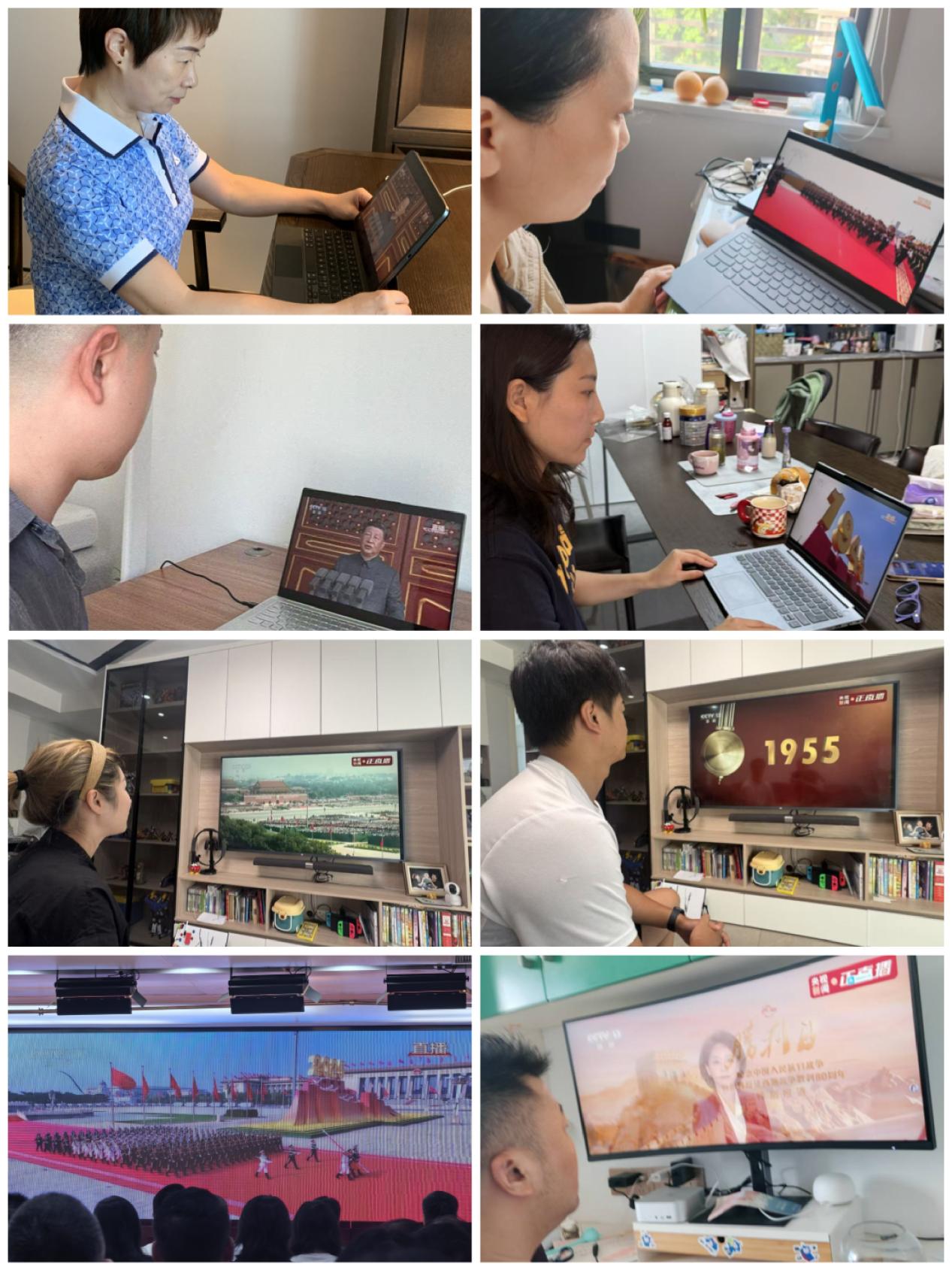 师生们全神贯注地观看大会盛况,认真聆听习近平总书记发表的重要讲话。当习近平总书记检阅部队时,画面中受阅部队整齐列阵,徒步方队步伐矫健、气势磅礴,装备方队展示的国产现役主战装备先进精良,空中梯队呼啸而过、英姿飒爽。此次阅兵既有传统主战力量的坚实展现,又有新域新质力量的震撼亮相。师生们深刻感受到,在习近平总书记强军思想引领下,人民军队革命化、现代化、正规化、信息化水平不断实现新跨越,威慑力和实战能力持续增强,民族自豪感和荣誉感在心中然油然而生,爱国热情被彻底点燃。