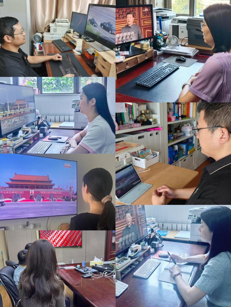 9月3日上午,机关党委组织各党支部全体人员认真收看纪念中国人民抗日战争暨世界反法西斯战争胜利80周年大会。此次活动旨在铭记历史、缅怀先烈,传承伟大抗战精神,激发机关教职工爱国热情和民族自豪感,机关党委在会前认真安排,积极组织机关各党支部通过集中收看和自行收看的方式收看纪念大会现场直播,确保本次活动取得实效。