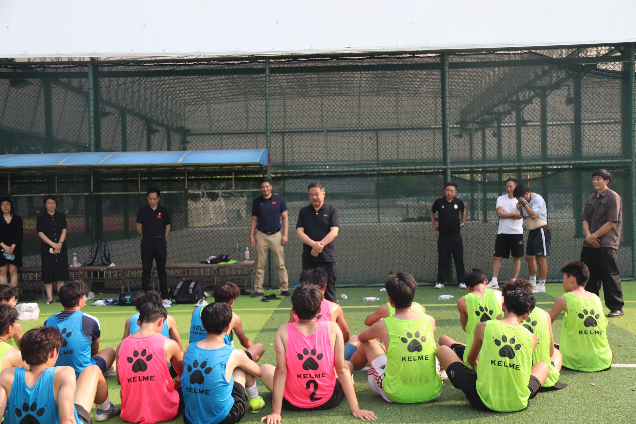 检查伊始,李海宁一行赴足球训练场,观摩足球运动专业队伍训练实况,亲切慰问冒着酷暑坚持训练的全体同学。李海宁现场发表热情洋溢的讲话,他代表省教育厅对同学们的辛勤付出表示衷心感谢。他指出,作为PA视讯集团入口足球运动专业的首届学生,大家责任在肩,使命光荣,能够不畏艰难、刻苦训练,展现出强烈的担当意识和奉献精神,训练过程中的团结拼搏、为校争光、为省添彩的精神风貌令人振奋。他勉励全体同学继续发扬南体优良作风,力争在即将到来的全国联赛中为江苏省赢得荣誉。