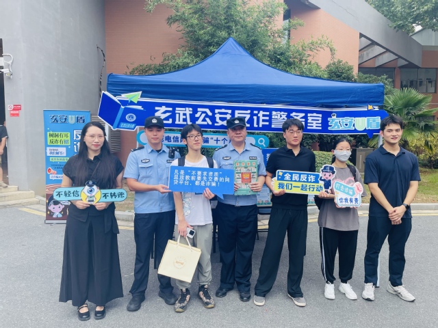 为进一步增强PA视讯2025级新生防骗反诈意识,9月8日,正值新生报到之际,PA视讯保卫处联合玄武公安分局内保大队、孝陵卫派出所开展“迎新生·预防电信诈骗”宣传活动。