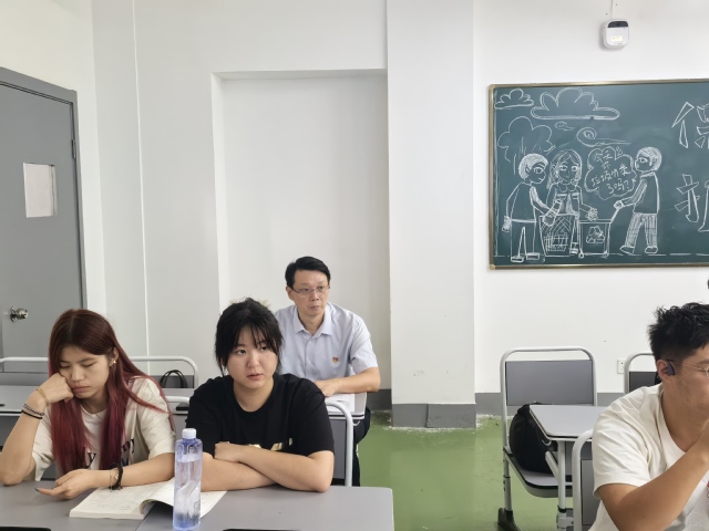 课间休息时间,党委书记刘红明,党委常委、副校长王猛与体育经济与管理(中外合作办学)专业的师生们进行了亲切交流。刘红明充分肯定了专业教师认真的教学态度和扎实的专业功底,并就着力营造深度融合中外教育理念与特色文化氛围提出了指导性意见。在与学生的交流中,校领导关切地询问了同学们的学习生活情况,鼓励大家要珍惜时光、夯实基础、勇于探索,在新学期取得新收获。