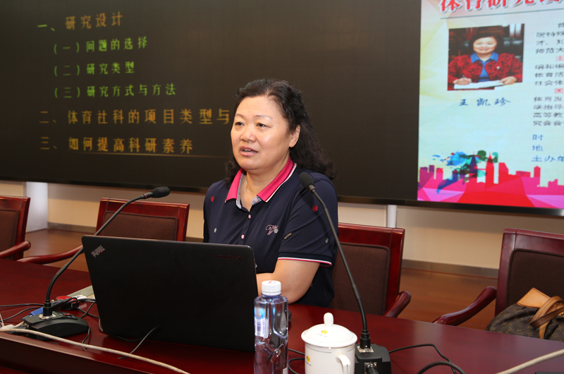 7月3日上午,首都体育学院副院长、二级教授、博士生导师王凯珍为我院师生作题为《研究设计与科研素养提升》的演讲。副院长李江主持讲座。