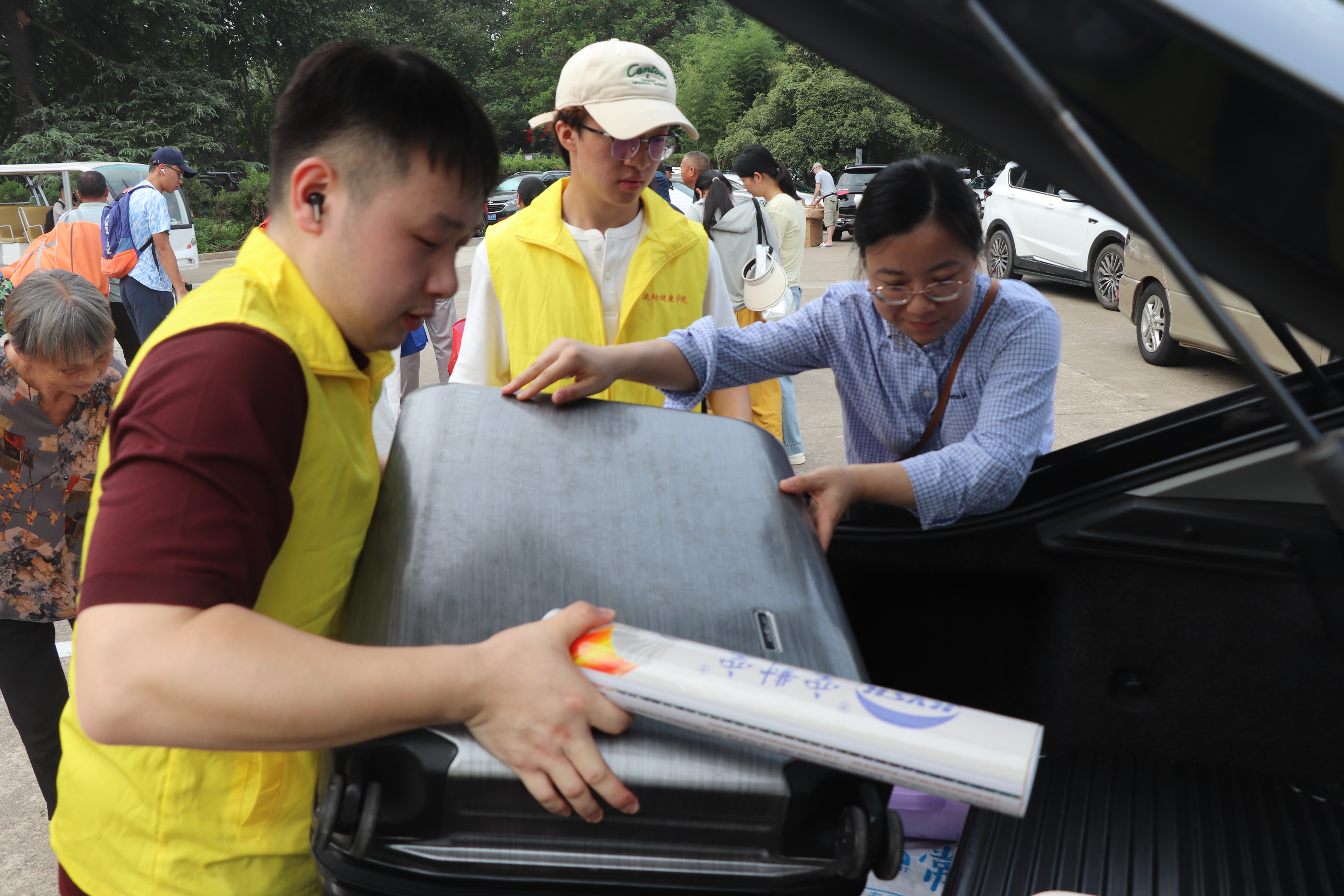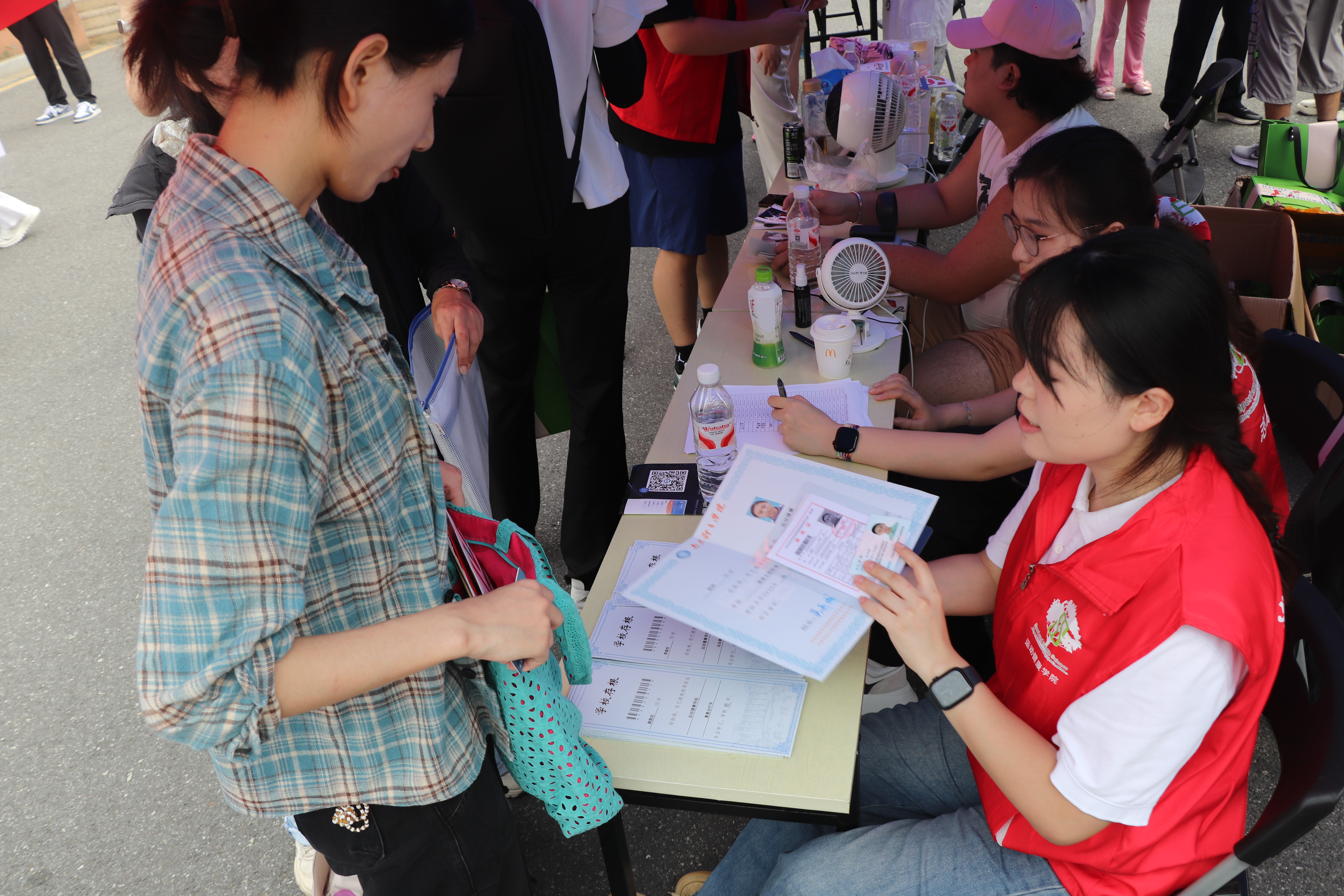 新生入校期间,志愿者全程提供贴心服务。在西门自行车赛场,志愿者主动接过新生手中的行李箱,化身“搬运工”分担行囊重量;同时担任“引路员”,耐心指引报到流程,细致讲解校园地图,为新生搭建顺畅入学通道。同时,学院在报到点增设“家长驿站”,为家长免费提供解暑凉茶,提供肩颈放松志愿服务。这份专属关怀,不仅让家长在等候期间放松身心,更让他们感受到了学院的专业与细致,对孩子未来的校园生活多了一份安心。迎新现场,相机快门声不断。志愿者们为每一位初入校园的新生拍下照片,定格下他们带着青涩与憧憬的“南体第一帧”。