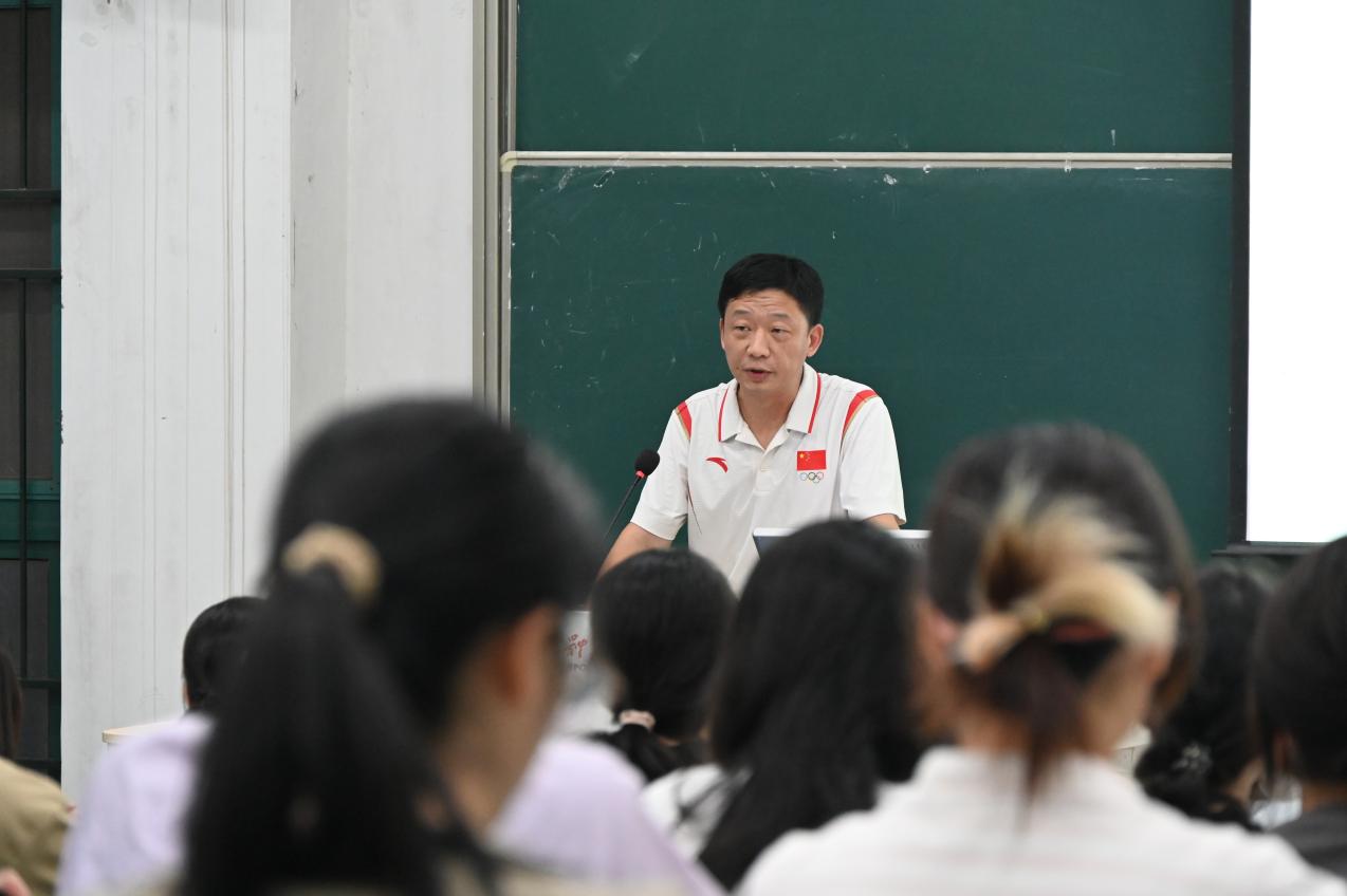 汤强介绍了运动健康学院的基本情况及师资力量,从大学的五大职能——人才培养、科学研究、社会服务、文化传承与创新、国际交流等出发,介绍了什么是大学,引发学生思考大学生活应该如何度过。他鼓励大家把格局放大、目光向远,希望全体新生在大学期间培养自觉、自我意识,掌握学习方法,做好大学的学习生活规划,在实践中锤炼本领、增长才干,以“六个一”为目标实现自我全面发展。