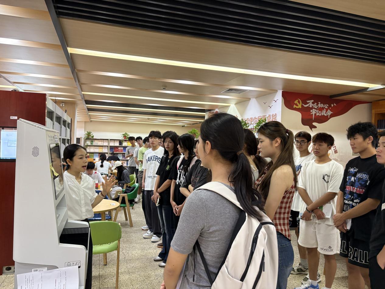 新生入馆教育是大学新生入学教育的重要组成部分,是新生利用图书馆的启蒙教育,也是培养大学生文献素养的基础工作。根据学校统一安排,图书馆利用9月10日上午、11日上午以班级为单位对2025级5个学院、26个班级、近千名新生进行了系统的入馆教育,并给每位新生演示了最新的RFID快速借还图书流程。