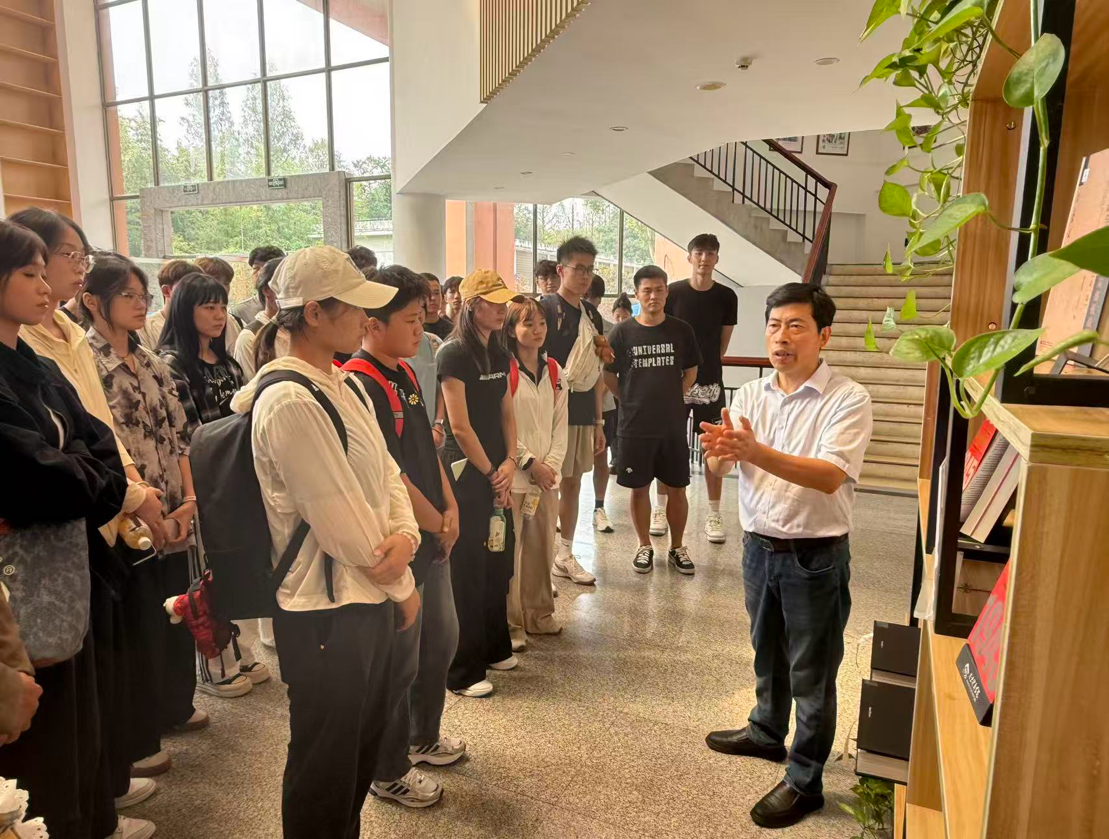 活动现场,图书馆馆长李明华以生动的叙事风格与鲜活的历史细节为引,带领新生深入了解南京体院图书馆的发展脉络。从建馆初期仅存数千册体育专业书籍与基础文献,到伴随学校发展实现文献资源几何级增长,图书馆的变迁不仅是学校办学实力提升的缩影,更承载着体育人薪火相传的使命担当。在李馆长的引导下,新生们通过翻阅馆内珍藏的历史书籍与爱国主义文献,重温中华民族在艰难岁月中砥砺奋进的奋斗历程,深刻感悟“国家兴亡,匹夫有责”的时代内涵,进一步明晰个人成长与国家发展的紧密联系,坚定“以体育人、强体报国”的理想追求。