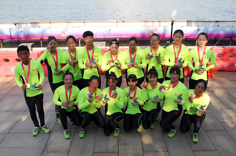 龙舟12人500米直道赛银牌获得者合影