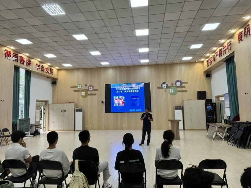 为切实提升体育教育专业师范生的综合素养与教学实践能力,助力其顺利完成从学生到教师的角色转变,9月8日至12日,体育教育与人文学院面向2026届体育教育专业学生集中开展了为期五天的教育实习岗前培训。