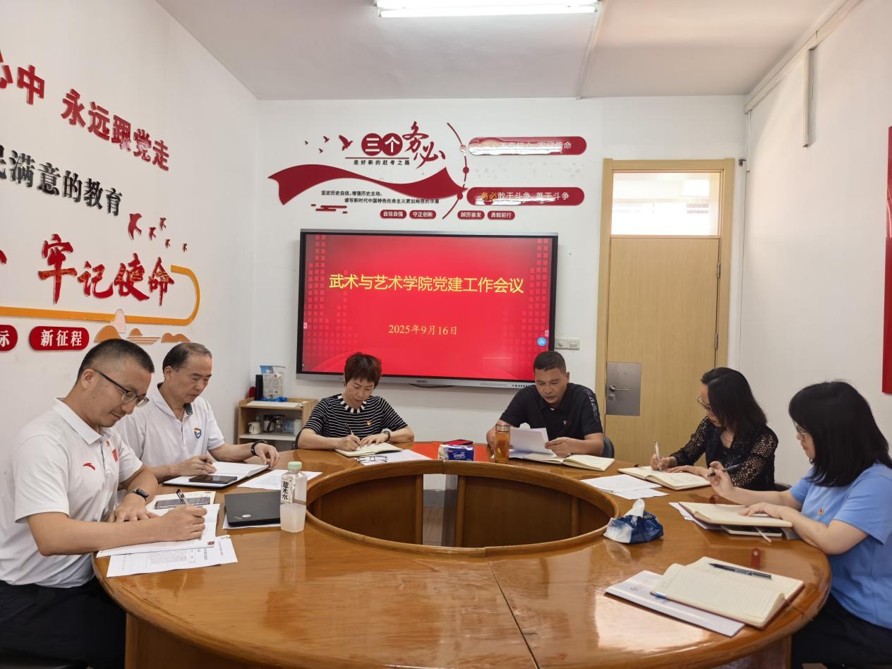9月16日,武术与艺术学院党总支在教学实验楼2号楼308会议室召开党建工作会议。党总支书记叶瑛主持会议,党总支委员、支部书记、组织员参加会议。