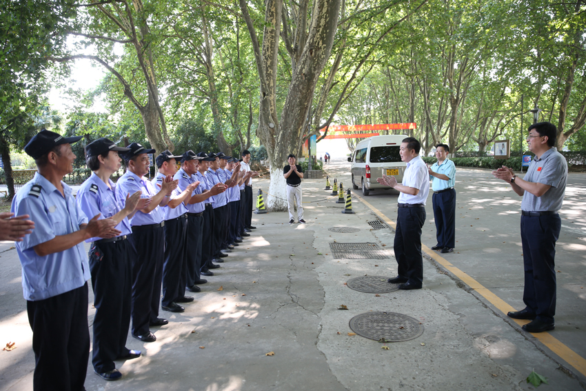 杨国庆院长在慰问中指出,今年是南体近十年来暑期工作任务安排最为繁重的一年,一是全力冲刺十三届全运会的各项后勤保障,二是全力保障下半年本科教学审核评估。校园环境美化、校舍改造、管网铺设、道路维修等,时间紧,任务重,责任大。高温酷暑下,为了圆满完成工作任务,大家坚守在工作岗位,非常辛苦,代表学院行政,向大家表示衷心感谢。希望大家做好防暑降温,保重身体,圆满完成各项工作任务,为完成学院的两大中心工作任务保驾护航。
