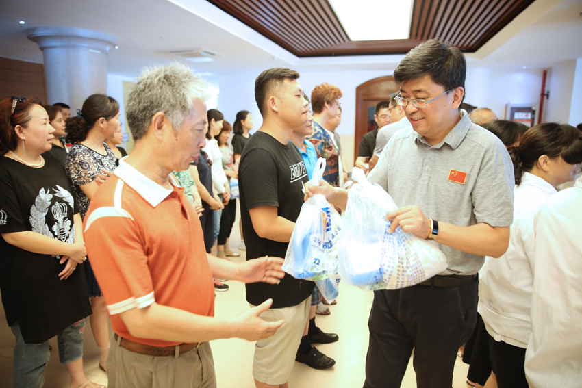 杨院长为工作人员发放慰问品