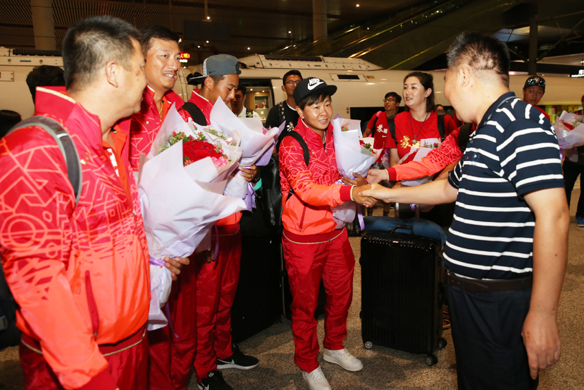 8月19日晚,网球队结束了全部赛程满载凯旋,院党委书记朱传耿、副院长肖爱华到车站迎接。网球队本次出征共夺得男双和女双两枚金牌,加上先前取得的男团金牌,网球队在本届全运会上共取得三枚金牌,为江苏代表团取得优异成绩立下汗马功劳。