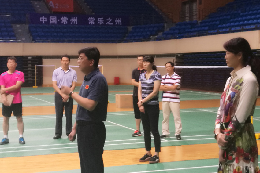 在常州市奥体中心体育馆,院领导认真观看了羽毛球队的训练,特别是刚从国家队回省的重点运动员的训练,和运动员、教练员进行了亲切的交谈,询问了运动队在常州训练的情况。对即将到来的全运会决赛,杨院长强调了三点要求: