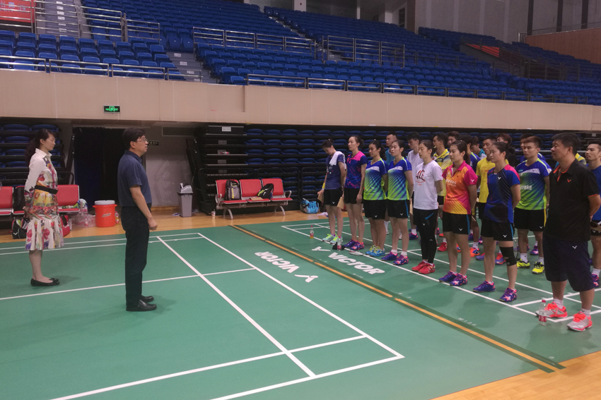 8月21日,在天津督战网球、艺术体操决赛的杨国庆院长、肖爱华副院长直接抵达常州,和院训练处、羽毛球系负责同志看望慰问正在这里封闭备战十三届全运会的羽毛球队运动员、教练员、科医管理后勤人员,并专门召开羽毛球项目决赛预案过堂会。