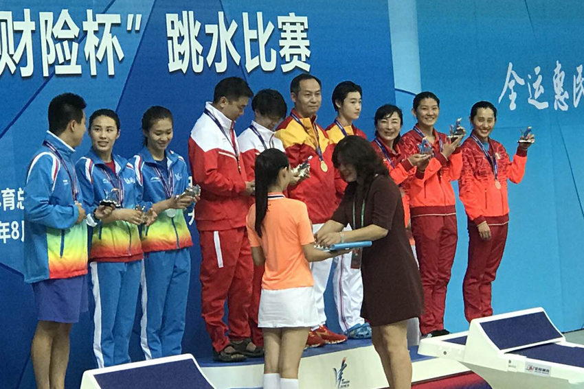 8月23日下午,在第十三届全运会跳水比赛女子双人三米板的决赛中,我院运动员屈琳/孙梦晨凭借最后一跳的出色发挥,夺得铜牌。