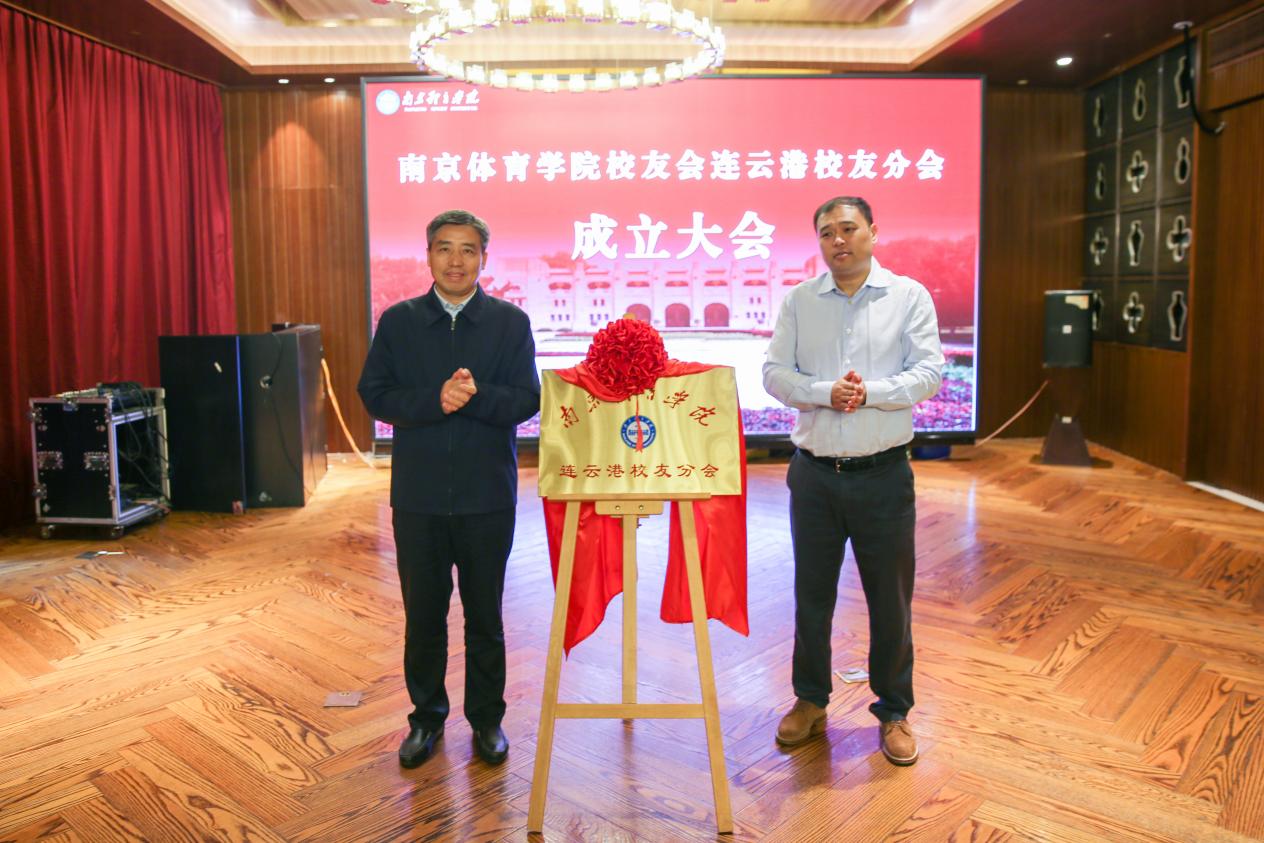 刘红明和新当选会长李韦共同为连云港校友分会揭牌