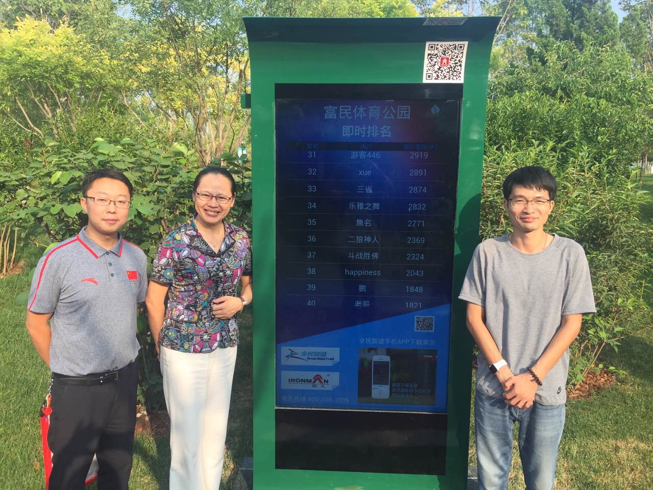 由本届全运会受表彰的全国群众体育先进个人——孙飙教授领衔的科研团队,在院领导的关心和指导下,借助协同创新项目的支持和协调,博取众长,整合资源,创造性地在步道上建设了具有高科技智慧型的健身管理与服务体系(简称“全民智道”)。该体系主要包括了:管理与服务大数据云系统、智能工作站、手机APP软件(含安卓与IOS)、呈现装备(含LED大屏和科学健身指示牌)、健身测试小屋(含国民体质测试、体适能测试),从而为步道的走跑锻炼打造了智慧型运动的“三个平台”,即:打造服务大众锻炼的交流平台、打造指导大众健身的科学平台、打造部门获取大众信息的统计平台,充分体现了步道健身“互联网+”、智慧体育、科学指导、高效管理的时代特征。
