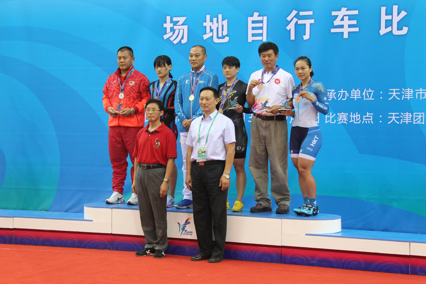 9月1日下午,在天津举行的第十三届全运会自行车项目女子场地争先赛决赛中,来自南京体院的江苏运动员唐梦琦获得银牌。院党委常委、总会计师黄步龙等领导为获奖运动员颁奖。