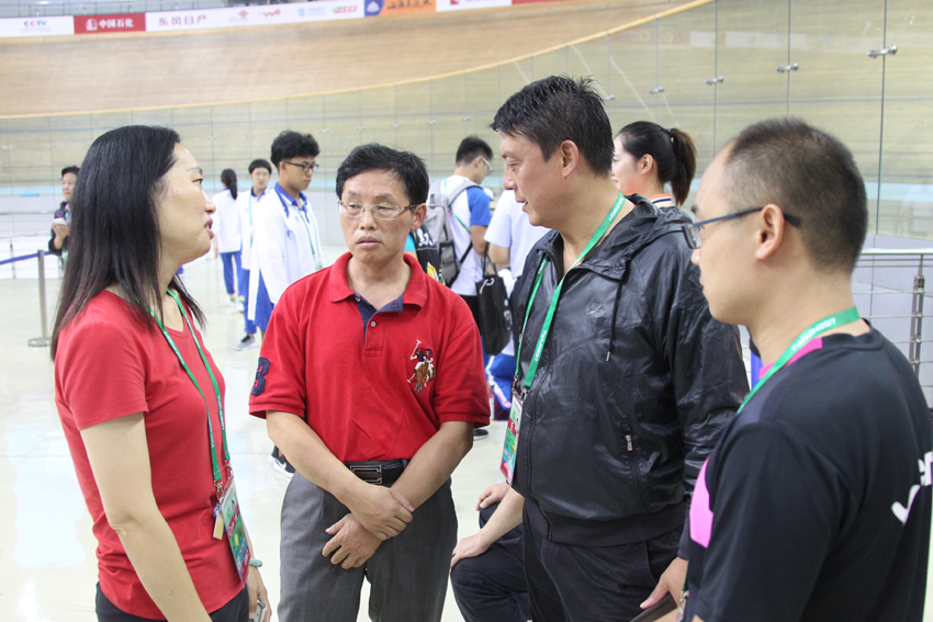 院党委常委、总会计师黄步龙了解自行车队参赛情况