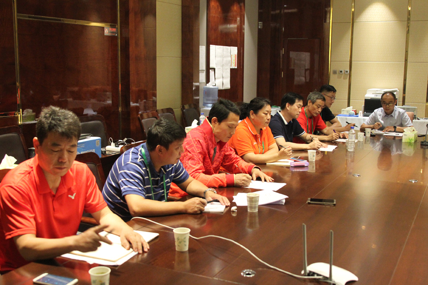 9月4日上午,PA视讯集团入口参加十三届全运会参赛工作领导小组在天津津利华大酒店召开阶段工作会议,总结全运会开幕以来我院参加全运会决赛工作。院党委书记朱传耿、院长杨国庆、副院长肖爱华,领导小组全体成员,党委宣传部、游泳系、体操系、羽毛球系负责人参加会议。