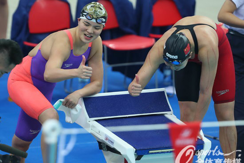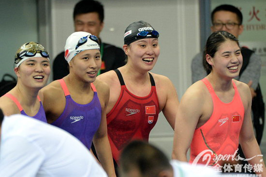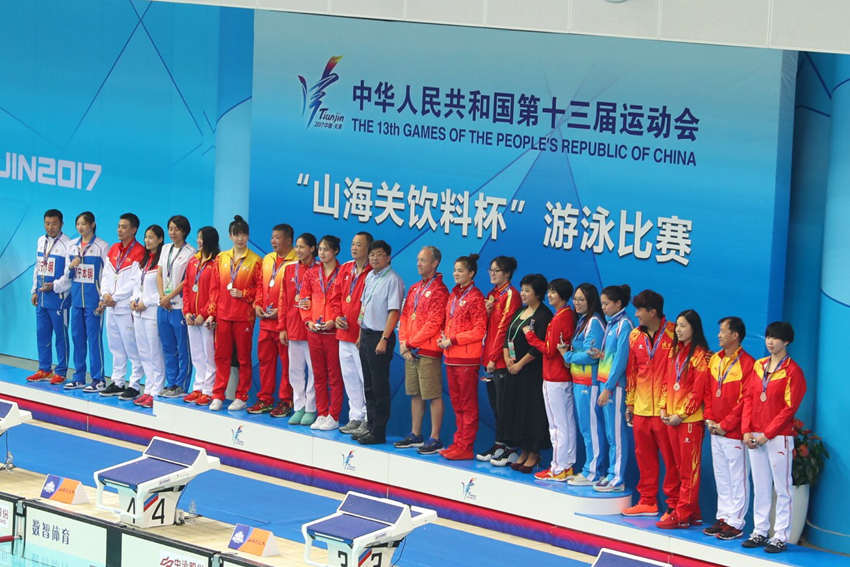 9月7日,在第十三届全运会游泳女子4*100米混合泳接力决赛中,江苏运动员史婧琳、张雨霏和浙江队友合作以绝对优势获得金牌。这是游泳队在本届全运会上获得的第7枚金牌,是南京体院在本届全运会上获得的第16枚金牌,也是江苏代表团获得的第31枚金牌。江苏体育代表团副团长、院长杨国庆等领导为获奖运动员、教练员颁奖。