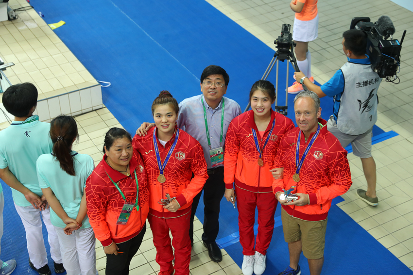 杨国庆院长等与史婧琳、张雨霏及教练合影