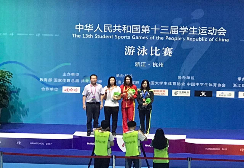 9月10日,在第十三届全国学生运动会上,我院2016级学生沈铎获得大学乙组女子200米自由泳冠军,并打破赛会记录。