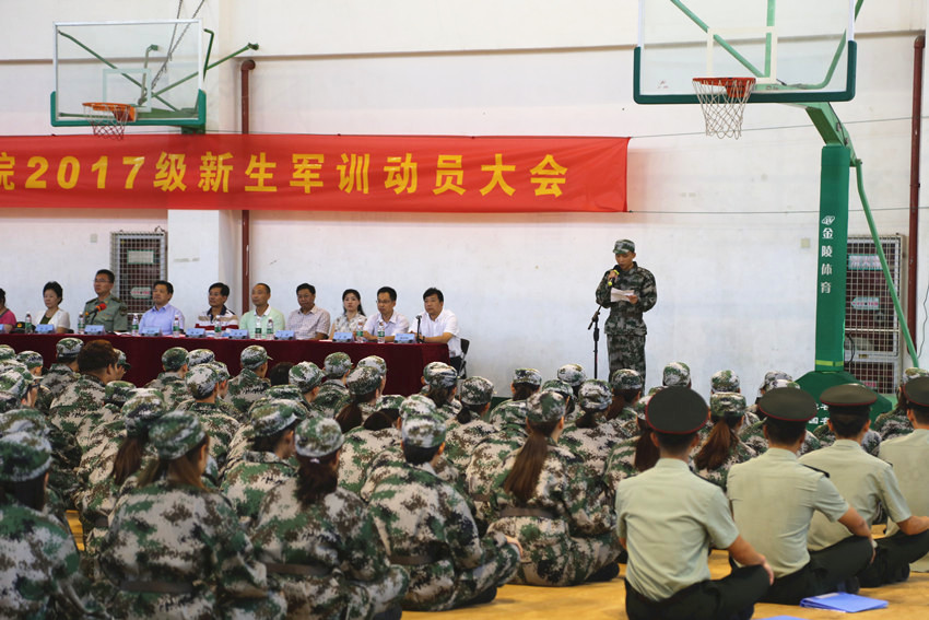 9月13日下午,我院先后在灵谷寺校区、仙林校区举行2017级新生军训动员大会。陆军工程大学野战工程学院学员大队副大队长初剑应邀出席会议,副院长、院军训工作领导小组组长金松出席会议并讲话,全体施训官兵、机关有关部门负责人、各高教单位学生工作负责人、跟训辅导员、跟训班主任及军训办工作人员等参加会议。院学工处副处长殷怀刚主持动员大会。