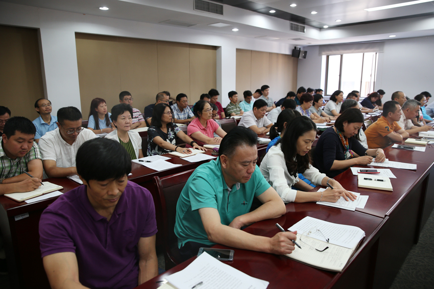 9月14日下午,我院召开党委中心组(扩大)学习会,集中学习习近平总书记7·26重要讲话。院党委书记朱传耿在会上作题为 《从新发展理念看习近平总书记的7·26重要讲话》的专题报告,强调要全面系统地深刻领会习近平总书记7·26重要讲话。院党委副书记、副院长汤岩主持会议,院党委常委蒋宏伟、金松、肖爱华、潘林珍出席会议并分别讲话。全院副处级以上党员干部参加了会议。