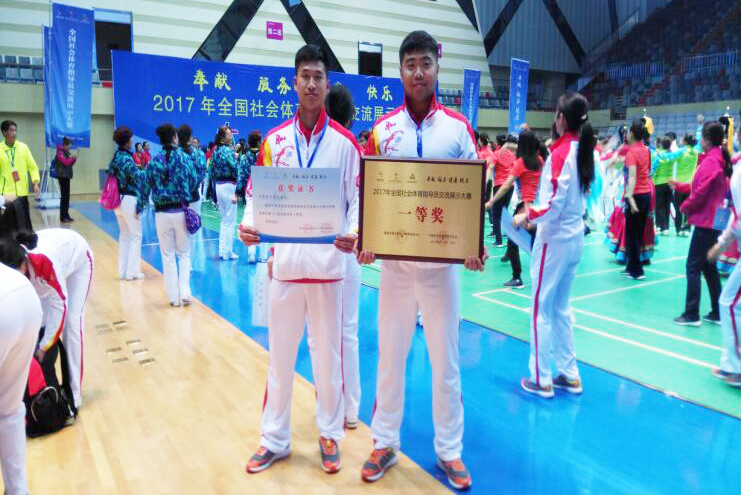 9月25-29日,在甘肃兰州举行的“2017年全国社会体育指导员交流展示大赛”上,PA视讯休闲体育系学生王钧达、熊浩天与江苏省其他队员合作,与来自全国26个省近700名社会体育指导员同台竞技,经过三天的激烈角逐,获得团体总分一等奖,王钧达、熊浩天分别获得知识竞赛三等奖及个人体育道德风尚奖。