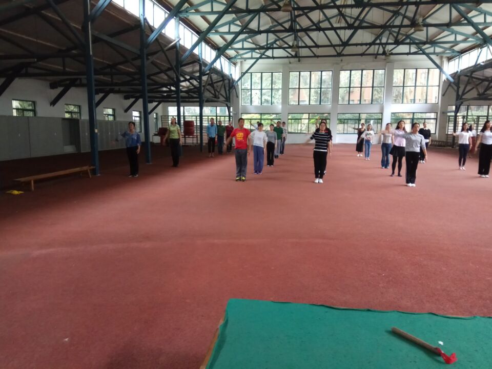 为丰富教职工文体生活,营造团结奋进、欢乐喜庆的校园文化氛围,以积极向上的精神风貌迎接党的十九大胜利召开,根据校工会组织开展广播操展演的要求,10月10日中午12点30,体育系工会组织全系老师在田武馆学习第九套广播体操。