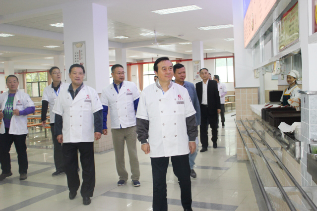 检查组专家在学生食堂检查