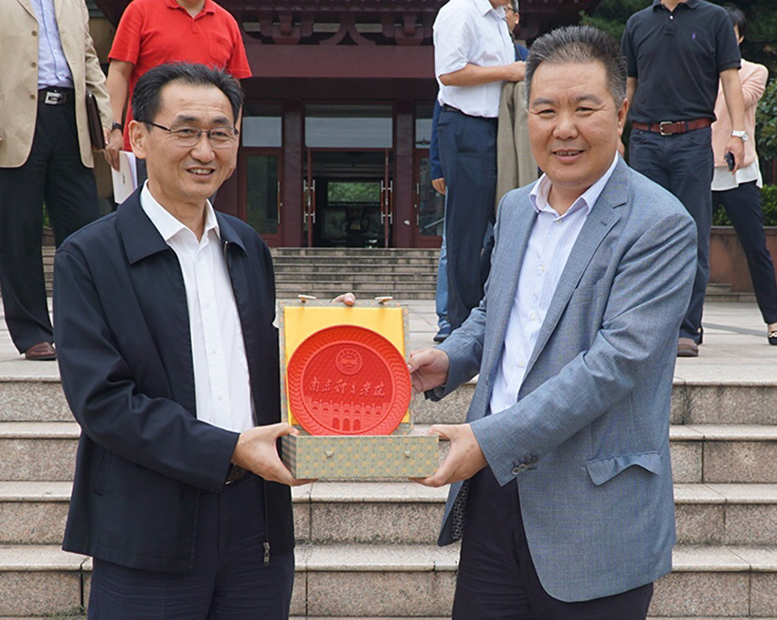 朱传耿书记向武汉体育学院党委书记彭道海赠送纪念品