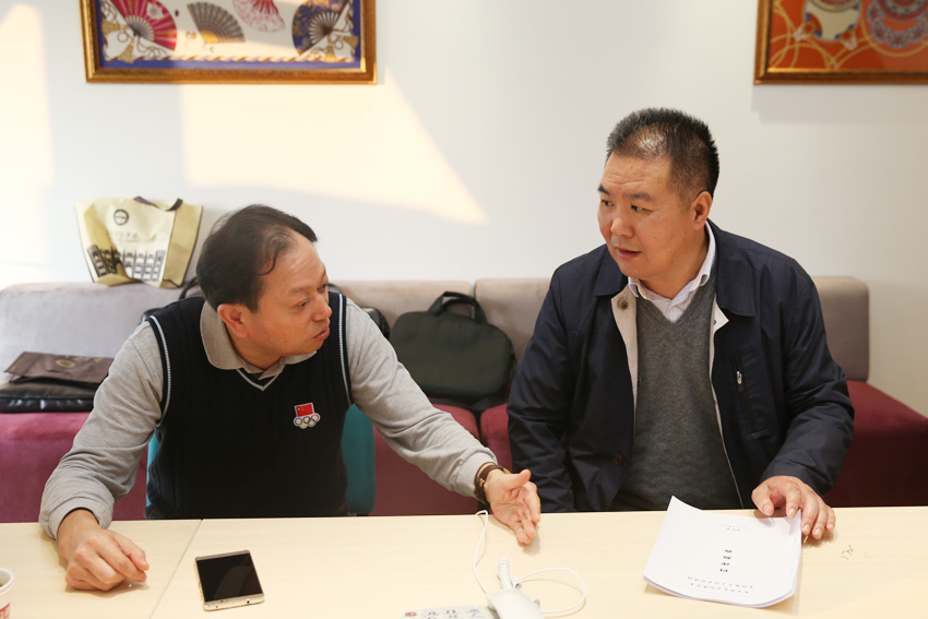 朱传耿书记与史国生副校长讨论审核评估自评报告