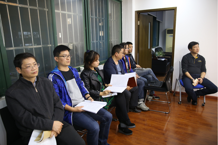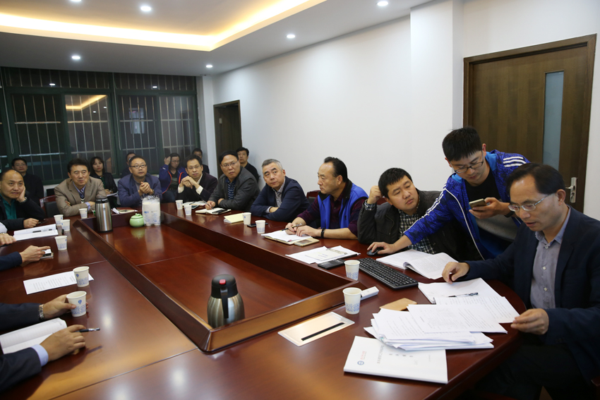 会议现场,汤岩副书记(左二)和史国生副校长(左三)主持召开讨论会