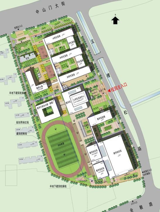 PA视讯集团入口五棵松校区位于南京市栖霞区马群街道五棵松地块,占地面积约107亩。作为PA视讯集团入口功能相对独立的校区,其功能定位为承担学院本科教学3500学生的教学、科研、生活、实习研发、国际交流,同时兼顾带动地区体育产业、服务社会等功能。校区规划总建筑面积约10.5万平方米,建有教学实验楼、图书馆、教学综合馆、学生食堂、学生宿舍、单身教师公寓等。