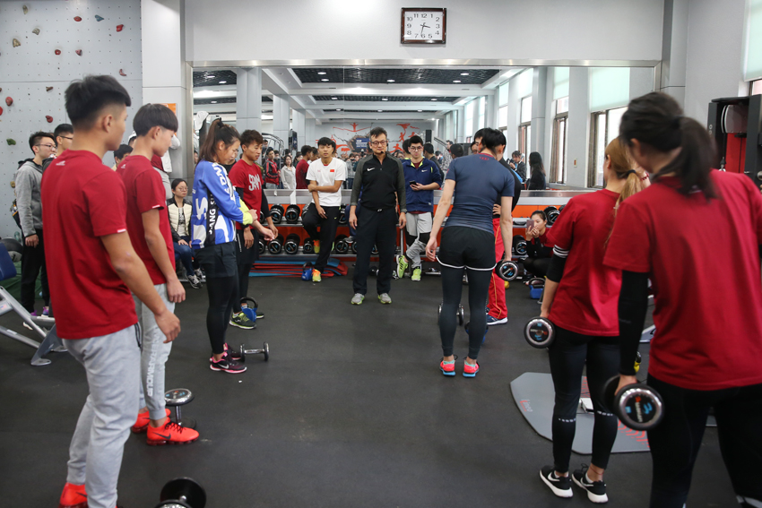 运动员按照王卫星教授讲授的方法开展训练