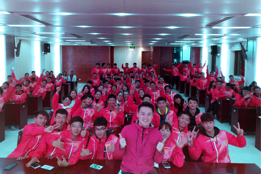 奥运冠军陆春龙与新生们合影