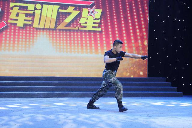 半个月时间里,孙曦同学刻苦练习,实现了从青涩到从容,由生疏到利落的蜕变。比赛前,在校人武部老师带领下,孙曦多次前往军训部队接受军事技能辅导。行进、立正、敬礼等军姿训练,虽然简单枯燥,但是举手投足之间却能展示一个军人的本色。倒功操,这是人民解放军与武警的必训科目,也是训练中最容易受伤的科目之一,包括前倒、侧倒与跃起后倒等一系列动作。尽管双手手踝破皮流血,但是并没有让孙曦停止训练,最终用精彩的倒功操表演赢得了现场评委和观众的热烈掌声。